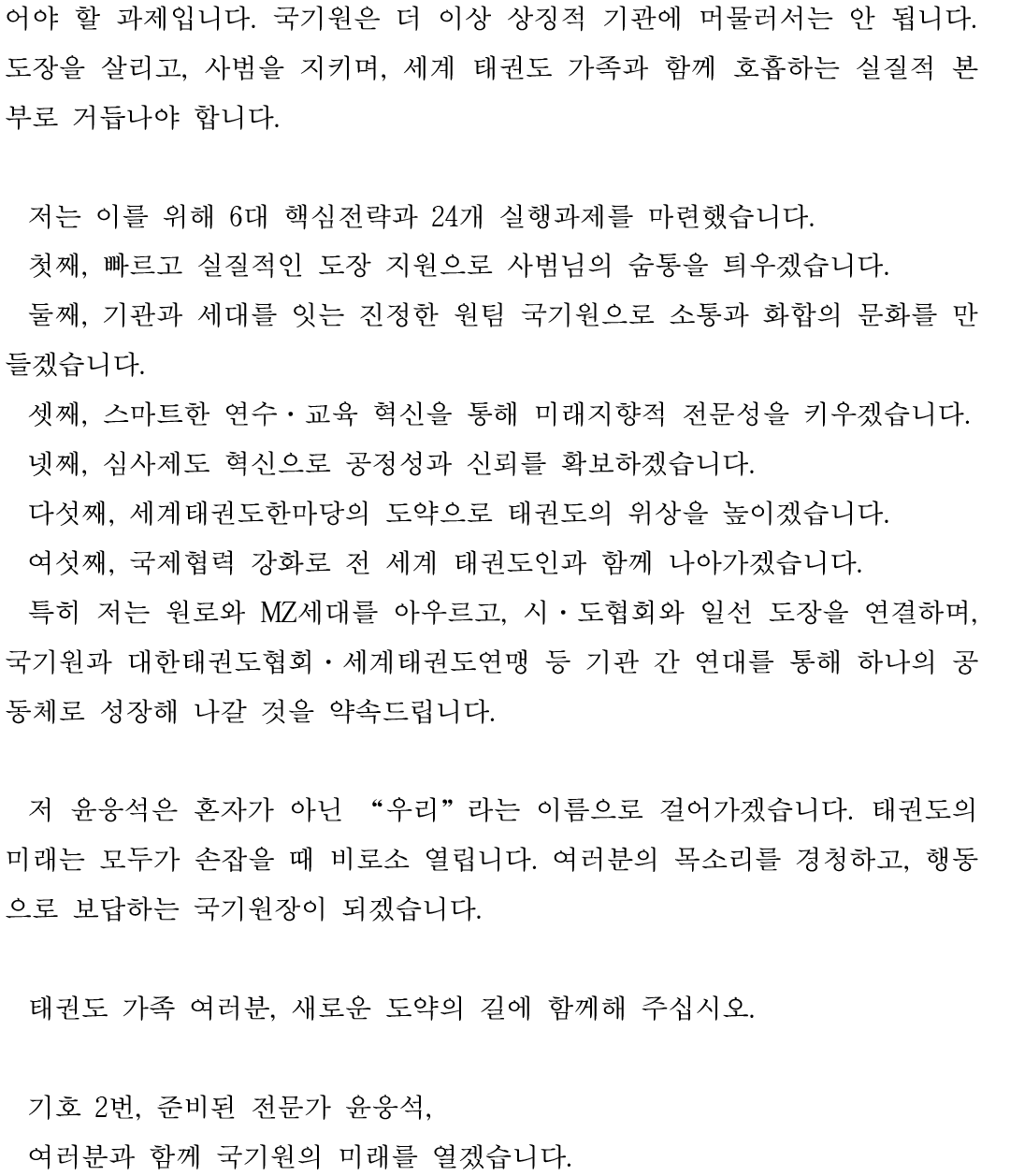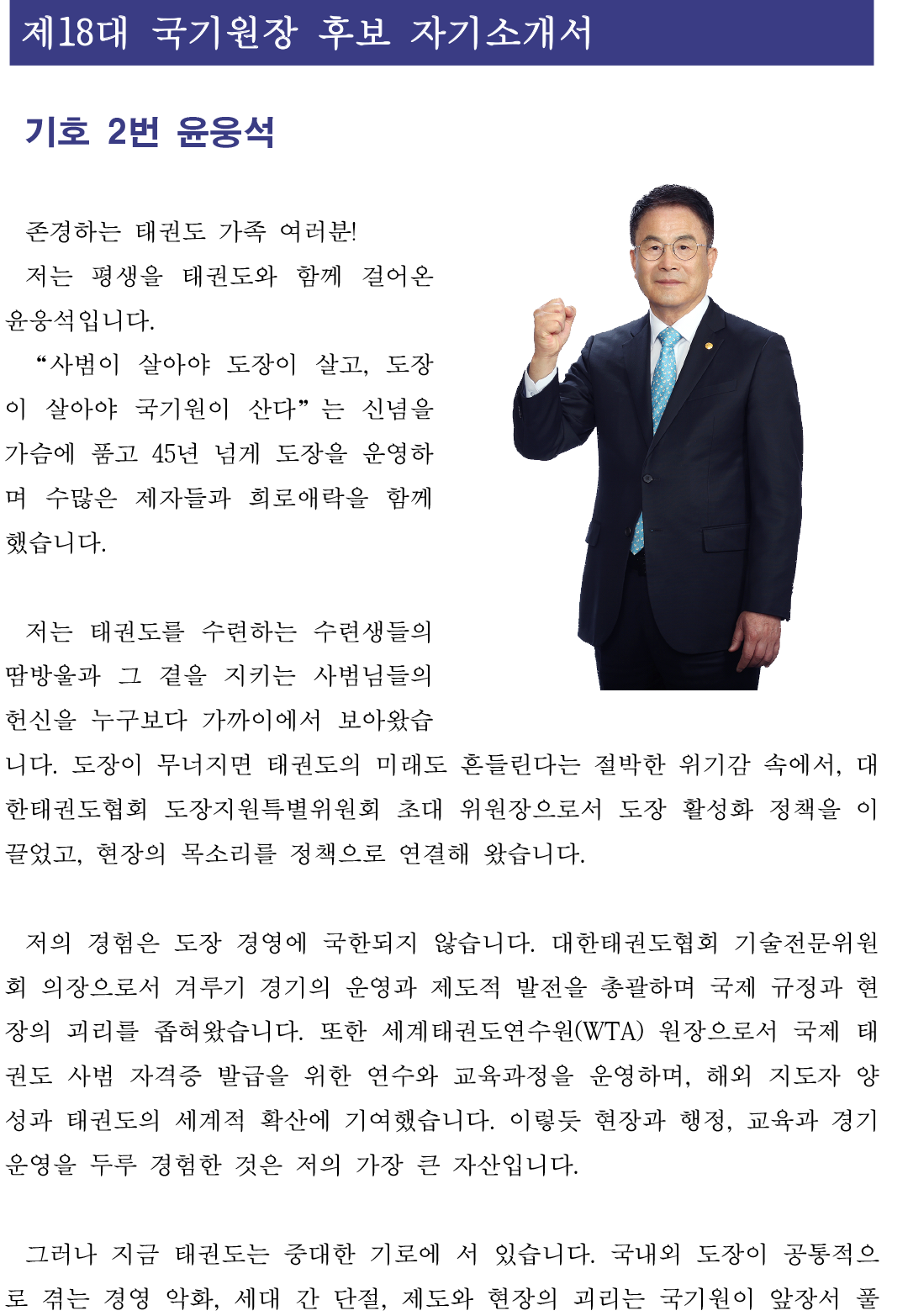 Experience | (Former) President of World Taekwondo Academy (Former) Vice President of the Korea Taekwondo Association |